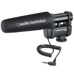 The AT8024 camera-mount microphone also comes equipped with a three-position adjustable attenuator (-20 dB, -10 dB, 0 dB) to capture even soft and very loud sound passages without distortion. A switchable low-frequency roll-off reduces pickup of undesired ambient noise, room reverberation and mechanically coupled vibrations. The microphone is powered by a single AA battery for optimal performance with high max SPL, and features an integral camera shoe mount that attaches quickly to DSLRs and shoe-equipped camcorders.