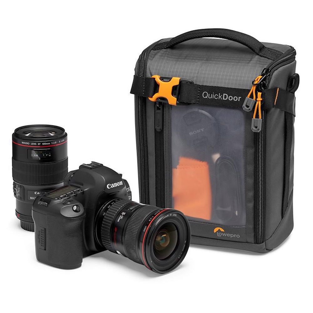 The LowePro GearUp Creator Box Large II camera bag organizer is the perfect portable solution to protect your mirrorless camera kit and accessories. Flexible interior dividers can be adjusted to secure full-frame mirrorless cameras like the Sony Alpha9 with a standard zoom lens plus 2-3 additional lenses. An interior pocket can hold a memory card and the exterior pocket stores cords, cables, lens caps, and accessories. The new QuickDoor entry system provides fast and easy access to gear, while a locking strap keeps everything secured right where you want it. Choose between carrying the organizer alone or inside a larger bag!