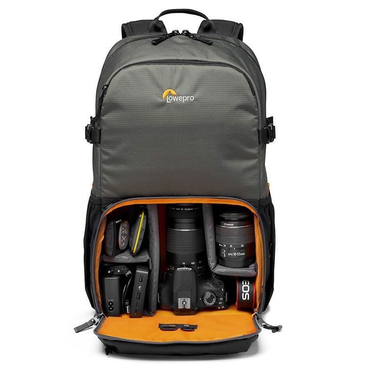 Lowepro’s Truckee BP 250 is a great basic camera daypack that delivers all-day comfort, durable materials, simple organization pockets, space for a tablet and room for your personal gear. Truckee backpacks blend fun, function, and grab-and-go spontaneity perfect for music festivals, light hikes or nights under the stars. The 50/50 split storage provides open space up top for an extra jacket or a snack, combined with an easy access camera compartment on the bottom. Camera space is perfect for a compact DSLR or mirrorless camera with 1 or 2 extra lenses. Also fits a compact folding video drone or video kit with camera, mic and light. Dual side compression straps and mesh pockets secure a compact tripod and water bottle. Integrated trolley pass-through lets you securely carry the bag on rolling luggage. Tricot lined external stash pocket for quick access to small items like phone, sunglasses, etc.