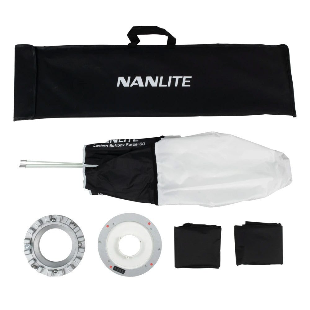 Created to be compatible with Nanlite’s Forza 60 LED, the Forza 60 Lantern includes both a Forza 60 Style and a Bowens Style Speed Ring. The inclusion of the near-universal Bowens mount expands compatibility to an extensive range of LED, strobe, and constant lights.