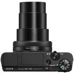 The RX100 VII maintains the convenient pocket-sized design of the RX100 family and is equipped with a high-contrast 2.35 million dot XGA OLED Tru-Finder™ electronic viewfinder, ensuring true-to-life image preview and playback functionality. With a single push, the EVF conveniently pops-up and automatically extends the eye-piece. It features optics with ZEISS® T* coating that greatly reduces reflections.
