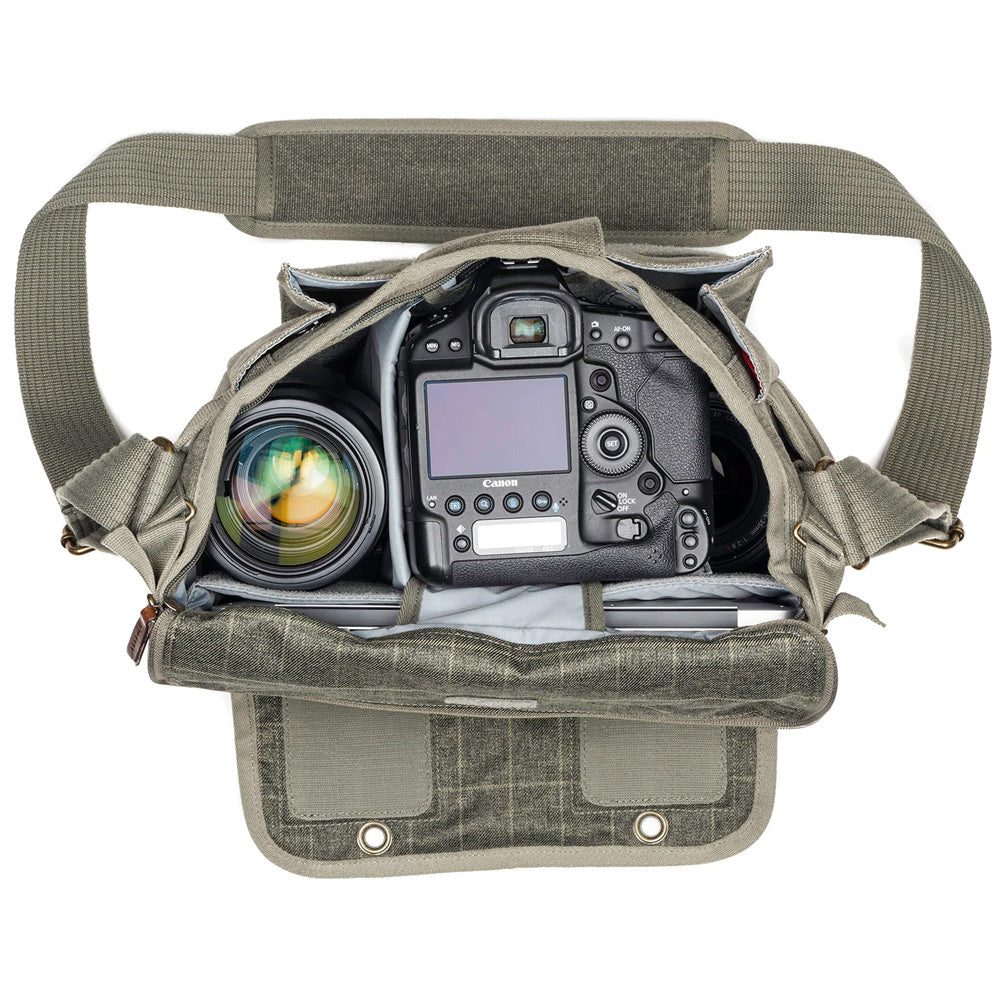 The ThinkTank Retrospective 10 V2.0 shoulder bag retains that classic look but includes many innovative new features. Keeping the soft, form-fitting design, they are lighter than the original. For greater security, we added a zippered opening under the main flap that tucks away when not in use.