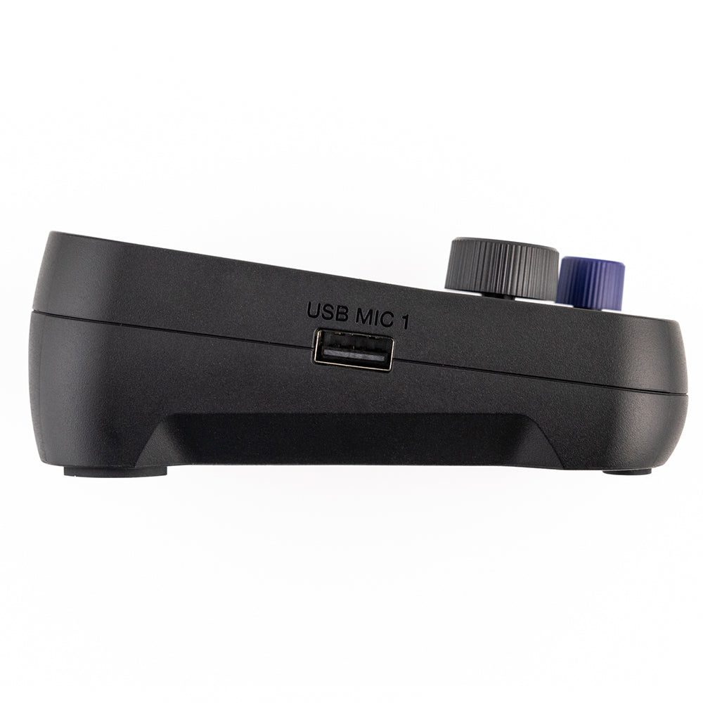 With dedicated mic volume knobs and easy to see level meters, you can dial in the perfect mix for your podcast.